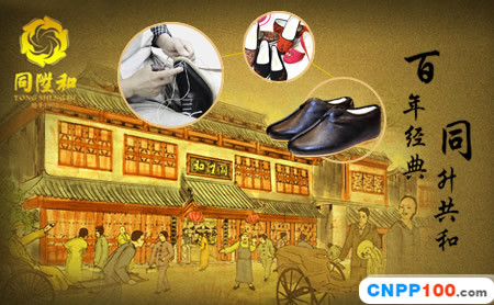 Founded in 1902 and now located in Wangfujing Street, Beijing Tongshenghe Shoe Store is a well-known footwear production and operation enterprise. Tongshenghe was originally mainly engaged in the production of mille-feuille shoes and hats, and the first shopkeeper, Mo Yinxuan, was a native of Baodi, Hebei. At the time of opening, Tie Liang, the minister of the Qing Dynasty, presented a couplet: "Work together to achieve harmony, ascend to the palace crown and wear a lot of wealth", cleverly integrating the three words "Tongsheng and He" into the couplet, which means "working together, harmony and wealth".